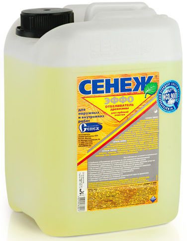 Отбеливатель СЕНЕЖ Эффо 5 кг производит глубокое отбеливание древесины за счет усиленного проникновения. Сохраняет эффективность отбеливания при длительном хранении средства. Самостоятельно нейтрализуется без образования высолов. Не оставляет химических ожогов на обработанных поверхностях. Удаляет все виды поверхностного поражения древесины. Выдерживает замораживание без потери свойств. Пригоден для обработки пищевой транспортной тары из древесины. Обработанная древесина безопасна для человека и домашних животных. Обладает приятным лимонным запахом. Пожаро-, взрыво- безопасный материал.