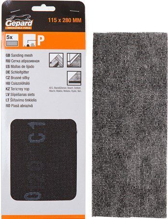 Сетка абразивная 115х280 мм Р100 GEPARD 5 штук (GP5013-100) используется для ручного шлифования металлических поверхностей, гипсокартона и для выравнивания штукатурных поверхностей. В качестве основы используется сетка из гибкого стекловолокна. Абразивный материал нанесен с обеих сторон, а сетчатая структура препятствует забиванию ячеек продуктами обработки, удаляя всю образующуюся пыль через отверстия. Используется совместно со шлифовальным брусом. Абразивная составляющая: оксид алюминия. Размер ячейки: 1.4х1.2 мм. Количество в упаковке: 5 штук.