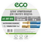 Шланг ПВХ армированный ECO 10/16 мм 10 м с быстросъемами (AHF-1010) оснащен быстросъемными соединителями и применяется для соединения пневматического инструмента с компрессорами и линиями подачи сжатого воздуха.