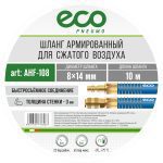 Шланг ПВХ армированный ECO 8/14 мм 10 м с быстросъемами (AHF-108) оснащен быстросъемными соединителями и применяется для соединения пневматического инструмента с компрессорами и линиями подачи сжатого воздуха.