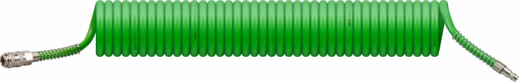 Шланг полиуретановый спиральный ECO 8/12 мм 10 м с быстросъемами (AHU-1080) оснащен быстросъемными соединителями и применяется для соединения пневматического инструмента с компрессорами и линиями подачи сжатого воздуха. Благодаря спиральной форме шланг способен растягиваться и сжиматься по принципу пружины, что предотвращает его запутывание и переламывание.