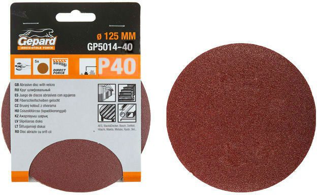 Шлифлист круглый самосцепляющийся 125 мм Р40 GEPARD 5 штук (GP5014-40) купить в сети строительных магазинов Мастак