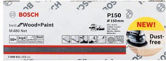 Шлифлист круглый сетчатый 150 мм G120 BOSCH (2608621173) используется на эксцентриковых шлифмашинах и предназначен для различных видов деревообработки: промежуточного шлифования лака, снятия различных лакокрасочных покрытий, тонкого шлифования мягкой древесины, твердой древесины с остатками смол/масел. Также шлифлист используется для шлифования лака, грунтовки и штукатурки.