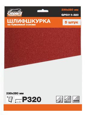 Шлифлист 230х280 мм Р320 GEPARD 5 штук (GP5011-320) предназначен для шлифования различных материалов: любых пород древесины, ДСП, строительных панелей, металла и др. Абразивный слой изготовлен из оксида алюминия. 5 штук в упаковке.