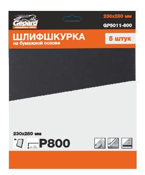 Шлифлист 230х280 мм Р800 GEPARD 5 штук (GP5011-800) предназначен для шлифования различных материалов: любых пород древесины, ДСП, строительных панелей, металла и др. Абразивный слой изготовлен из оксида алюминия. 5 штук в упаковке.
