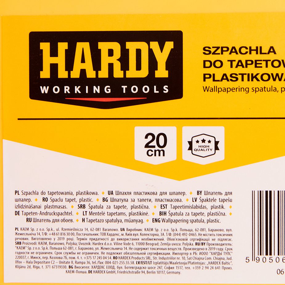 Шпатель для обоев HARDY 200 мм (0610-570020) предназначен для разглаживания обоев по поверхности, а так же удаления пузырьков воздуха при оклейке. Помогает получить идеально гладкую поверхность. Изготовлен из легкого и прочного пластика.