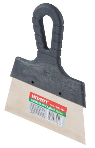Шпатель фасадный нержавеющий 150 мм ВОЛАТ (34040-150) – основной инструмент при внутренней отделке помещений, представляет собой металлическую пластину трапециевидной формы с эргономичной пластиковой ручкой, предназначен для нанесения шпаклевочных и клеевых смесей на обрабатываемую поверхность: стены, пол, потолок. Может применяться для снятия старых обоев или краски.