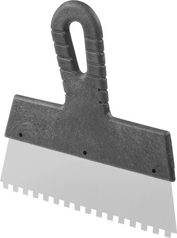 Шпатель зубчатый нержавеющий STARTUL Master 200 мм зуб 6 x 6 мм (ST1004-2006) широко используется при работе с кафельной плиткой и другими облицовочными материалами. Применение шпателя с зубчатой рабочей поверхностью обусловлено необходимостью в оптимальной толщине клеевого раствора, наносимого на облицовочный материал, что приводит к улучшению эффективности и качества облицовочных работ, позволяет экономить клеевой раствор. Выбор шпателя зависит от уровня кривизны стен – чем больше кривизна, тем большие по размерам зубцы должны быть. Изготавливается из нержавеющих сталей. Толщина рабочей поверхности составляет 0,5 мм.