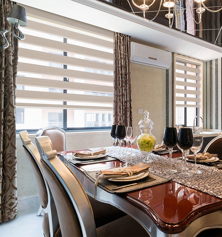 Штора рулонная СРШ-01МК-45904 системы “День&Ночь”, изготовлена из 100 полиэстера. Цвет: натуральный песок. С направляющими струнами.