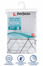 Штора для ванной комнаты 180х180 с кольцами PERFECTO LINEA Secret геометрия белая (36-118001) используется для защиты ванной комнаты от повышенной влажности, обеспечивает сухость пола и коврика в ванной комнате, а также служит декоративным элементом. Прочная, водонепроницаемая шторка изготовлена из высококачественного полиэтилена (PEVA).