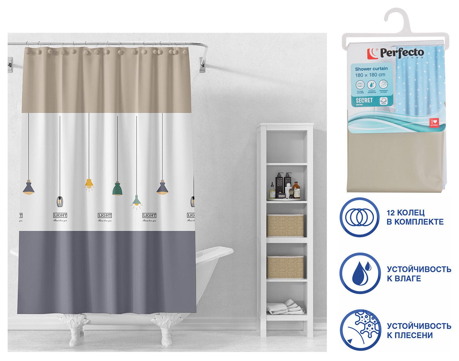 Штора для ванной комнаты 180х180 с кольцами PERFECTO LINEA Secret лампы (36-118101) используется для ванной комнаты. Штора для ванны с оригинальным принтом освежит и украсит интерьер ванной комнаты. Красивая и яркая штора для ванной это прекрасный подарок на новоселье и любой праздник. Прочная, водонепроницаемая шторка изготовлена из высококачественного полиэтилена (PEVA). Штора комплектуется 12 пластиковыми колецами, которые подходят ко всем современным карнизам.