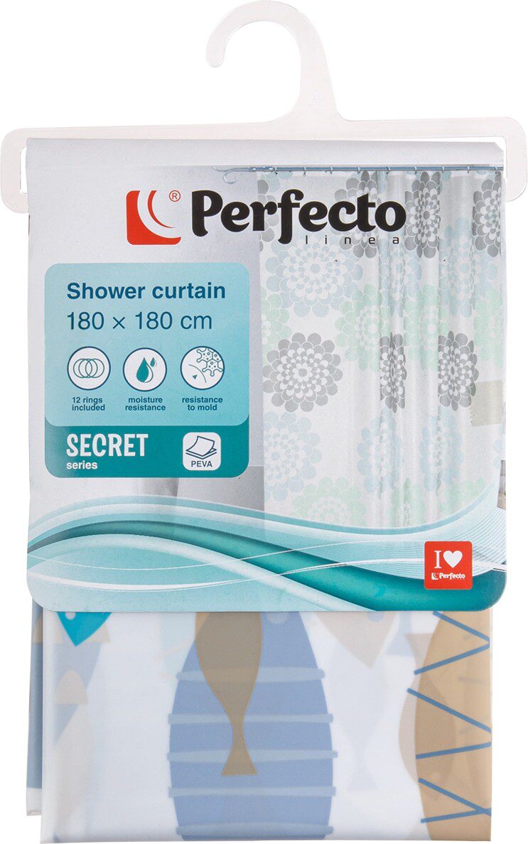 Штора для ванной комнаты 180х180 с кольцами PERFECTO LINEA Secret рыбки (36-118007) используется для защиты ванной комнаты от повышенной влажности, обеспечивает сухость пола и коврика в ванной комнате, а также служит декоративным элементом. Прочная, водонепроницаемая шторка изготовлена из высококачественного полиэтилена (PEVA).