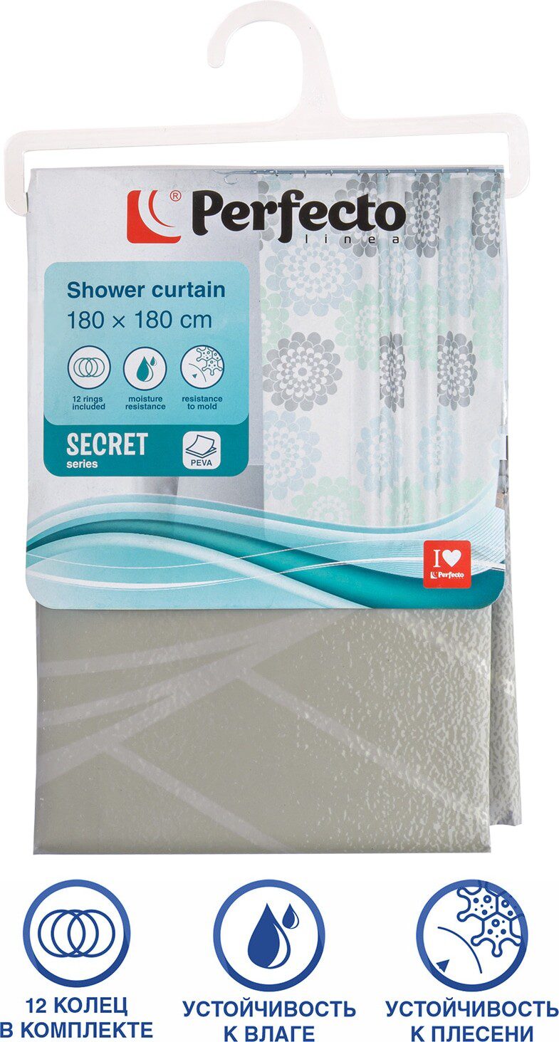 Штора для ванной комнаты 180х180 с кольцами PERFECTO LINEA Secret жемчужная (36-118006) используется для защиты ванной комнаты от повышенной влажности, обеспечивает сухость пола и коврика в ванной комнате, а также служит декоративным элементом. Прочная, водонепроницаемая шторка изготовлена из высококачественного полиэтилена (PEVA).