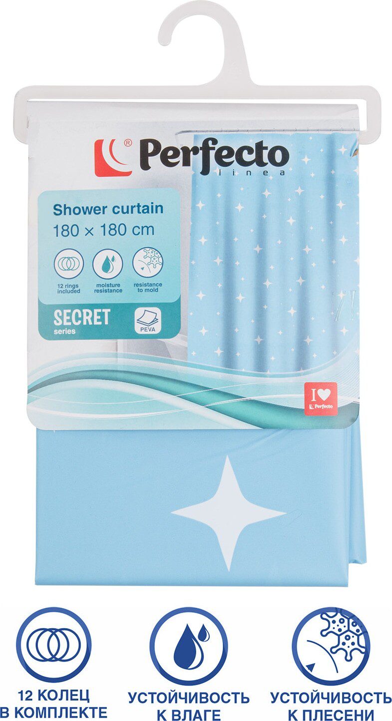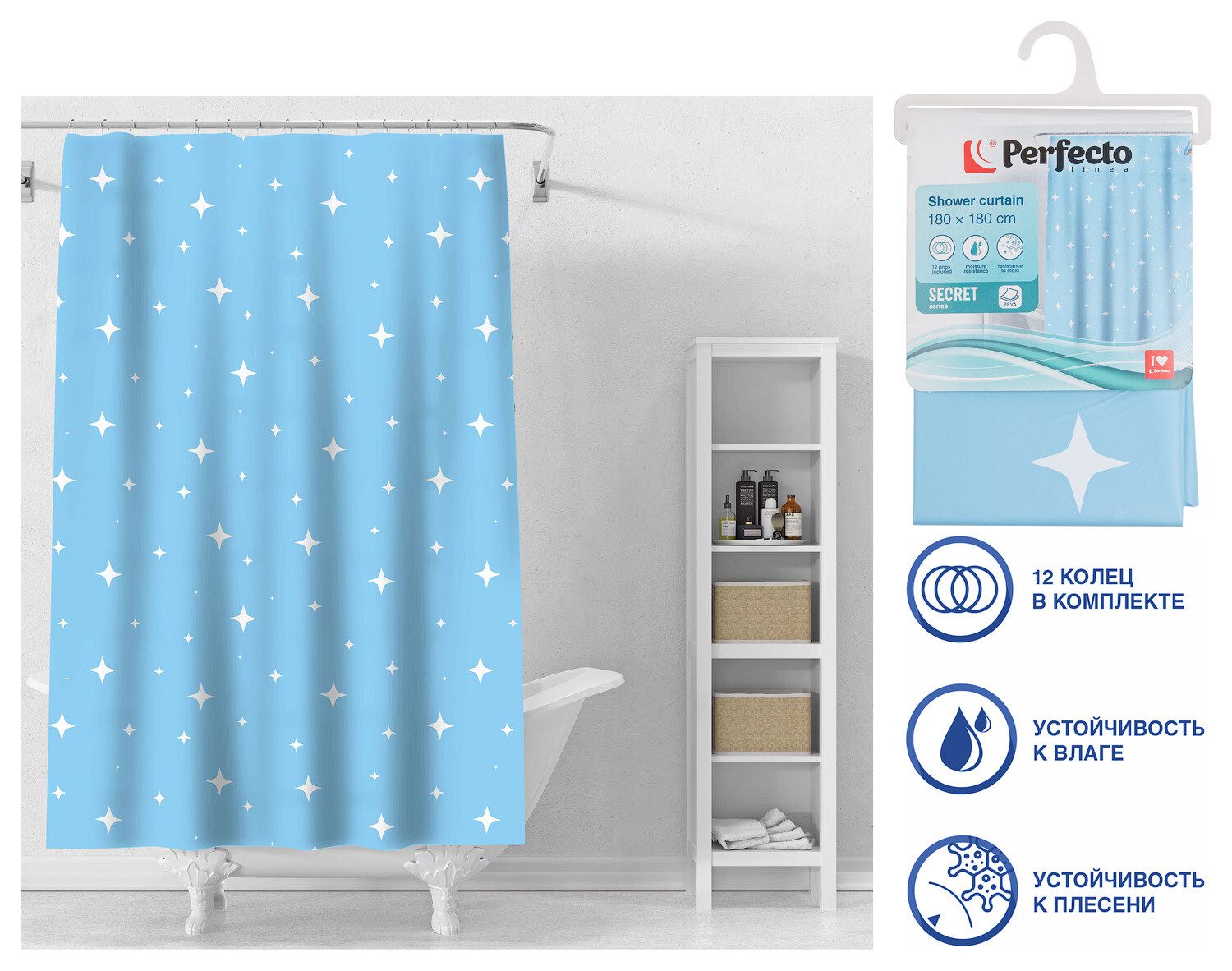 Штора для ванной комнаты 180х180 с кольцами PERFECTO LINEA Secret звездное небо (36-118102) используется для ванной комнаты. Штора для ванны с оригинальным принтом освежит и украсит интерьер ванной комнаты. Красивая и яркая штора для ванной это прекрасный подарок на новоселье и любой праздник. Прочная, водонепроницаемая шторка изготовлена из высококачественного полиэтилена (PEVA). Штора комплектуется 12 пластиковыми колецами, которые подходят ко всем современным карнизам.