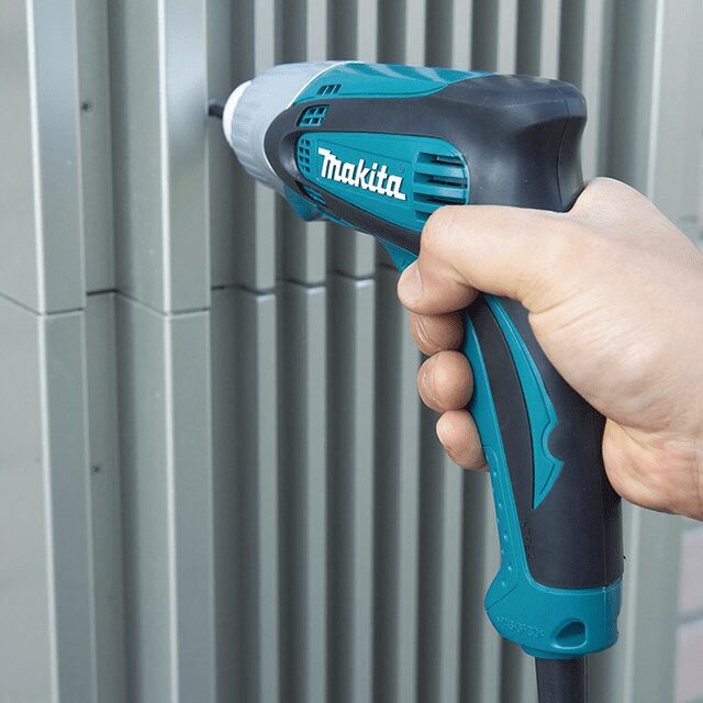 Шуруповерт сетевой ударный MAKITA TD 0100 (TD0100) — компактный и легкий, рассчитан как на профессиональное, так и на домашнее использование. Новый усовершенствованный ударный механизм позволяет быстро наживлять саморезы, как только саморез наживлен ударный механизм отключается. Флуоресцентный бампер делает удобной работу в темных местах. Ударный механизм защищен тонким и прочным корпусом из алюминия. Удобный рычаг включения реверса, расположенный над кнопкой включения. Регулируемое число оборотов. Эргономичная прорезиненная рукоятка обеспечивает удобный захват рукой.