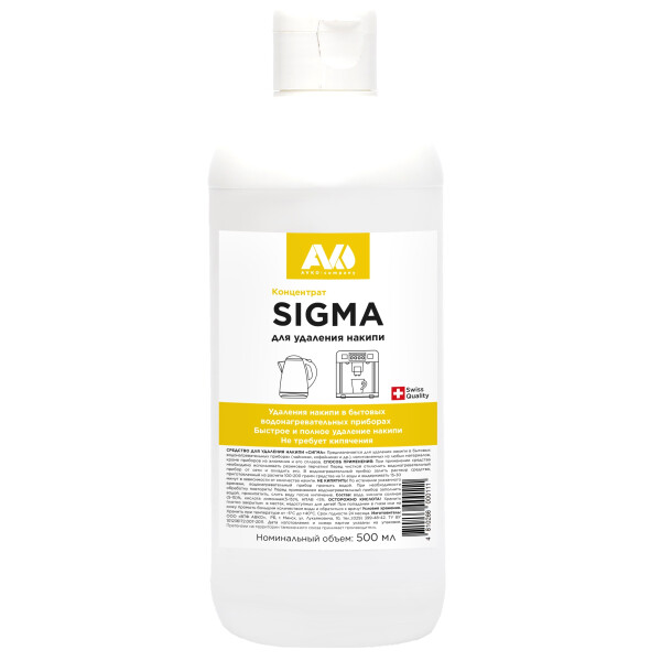 Средство чистящее AVKO Сигма удаление накипи в бытовых приборах 0,5 л предназначено для удаления накипи в бытовых водонагревательных приборах (чайниках, кофейниках и других), изготовленных из любых материалов, кроме приборов из алюминия и его сплавов.