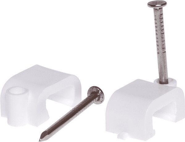 Скоба для крепления прямоугольного кабеля с гвоздем STARFIX используется для монтажа кабеля (провода). Крепится гвоздем к деревянным или отштукатуренным поверхностям, гипсокартону, ГВЛ.