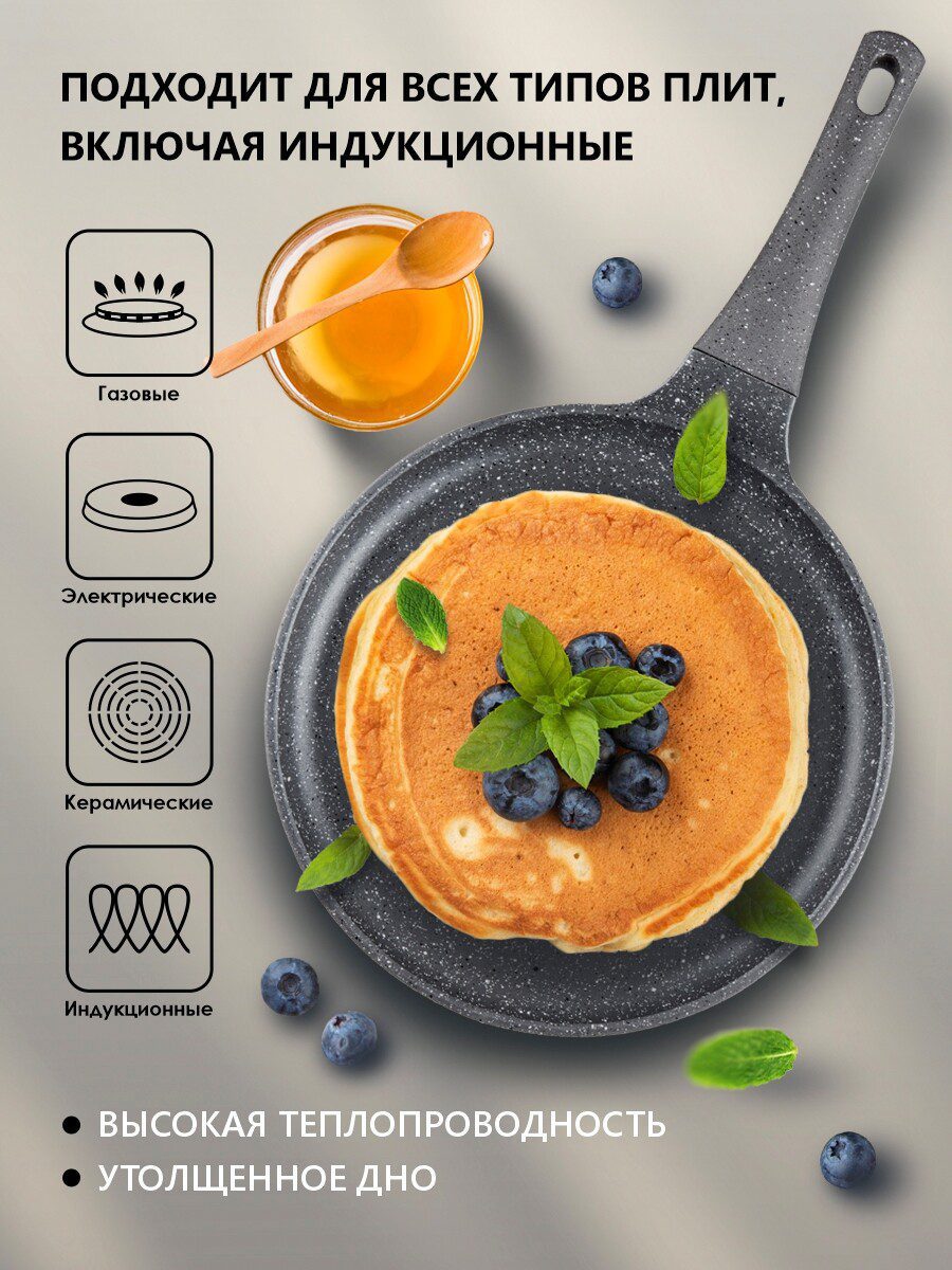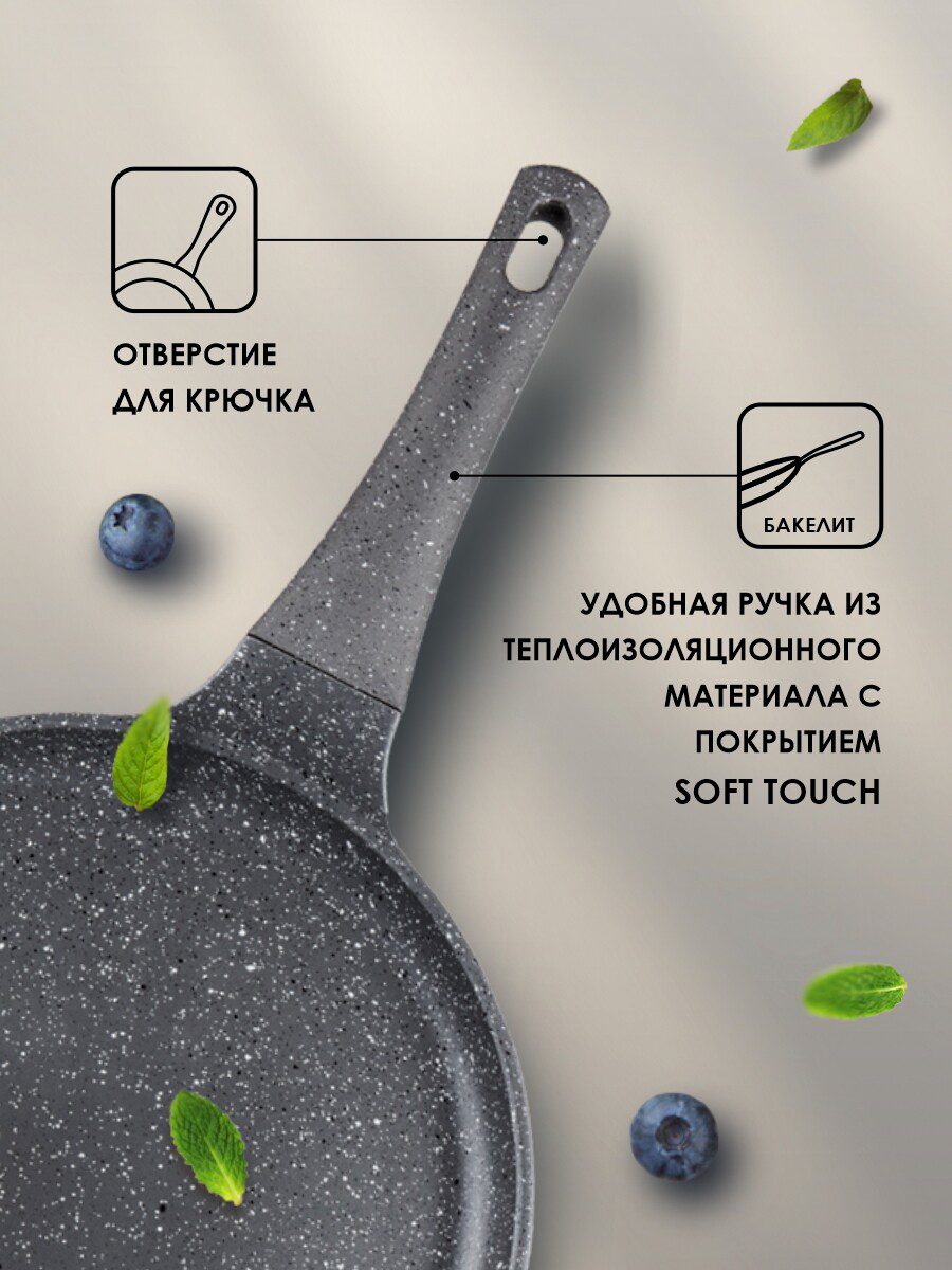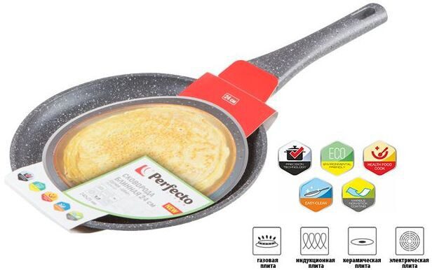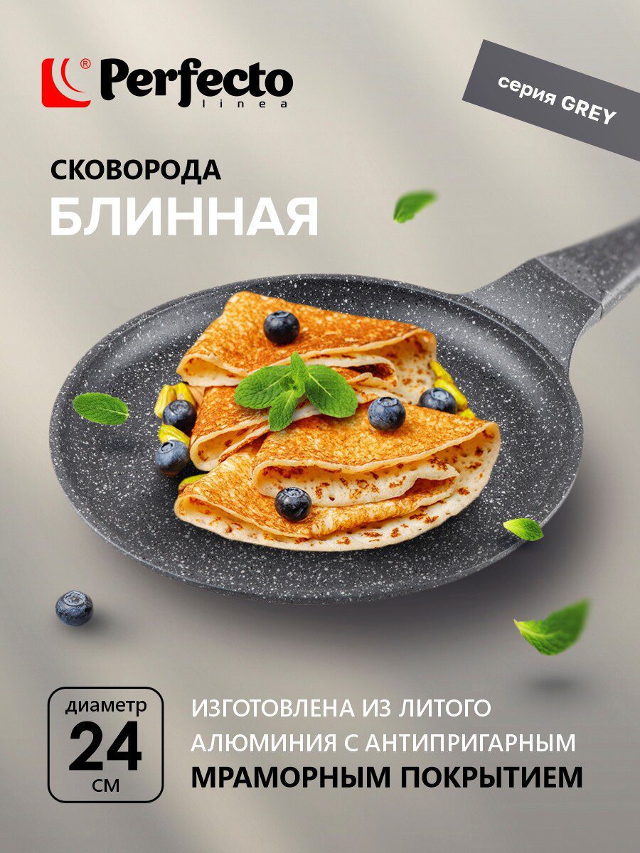 Сковорода алюминиевая блинная 24 см PERFECTO LINEA Grey (55-242111) изготовлена по современным технологиям из литого алюминия, который исключает возможность деформации и гарантирует изделию долгий срок службы. Имеет трехслойное мраморное покрытие, которое не вступает в реакцию с пищей и позволяет готовить блюда без добавления масла. Бакелитовая рукоятка сковороды не нагревается. Подходит для всех типов плит, включая индукционные. Легко моется и очень удобна в использовании.
