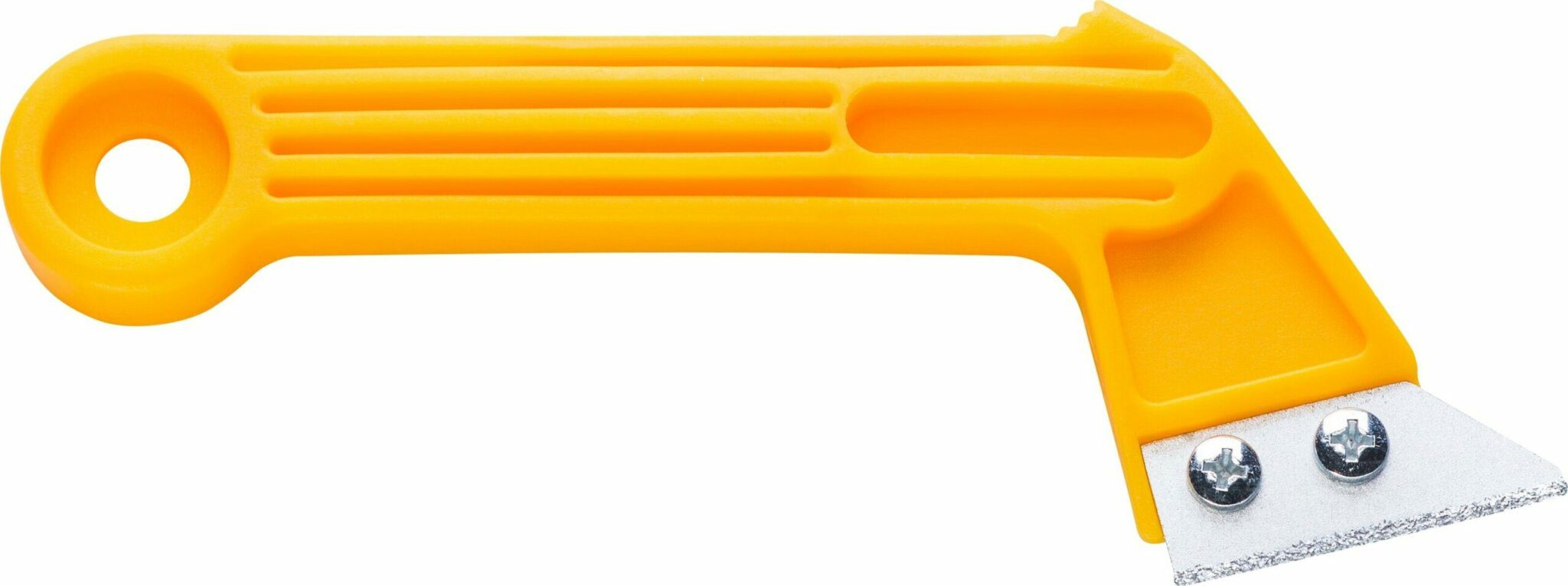 Скребок малярный для очистки швов 50 мм HARDY (1004-940050) предназначен для обработки меж-плиточных швов. Вольфрамовое напыление помогает быстро и качественно очистить швы между настенной и напольной плиткой. Лезвия легко меняются с помощью крестовой отвертки РН2. За счёт формы лезвия «трапеция», удобно работать в труднодоступных местах.