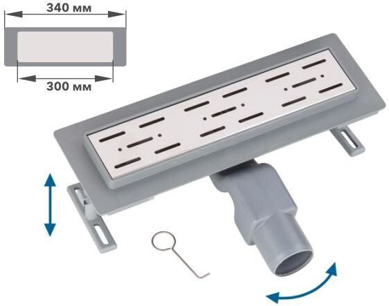 Водоотводящий желоб с поворотным выпуском D50 AV ENGINEERING 65х300 мм (AVE5016530) – продукция Nova заслужила широкую известность благодаря своей функциональности, элегантному внешнему виду и высокой степени надёжности. Решетка изготовлена из нержавеющей стали 304. Водоотводящий желоб имеет поворотный выпуск на 360 градусов. Выход в канализацию – горизонтальный. Диаметр выхода в канализацию: 50 мм.