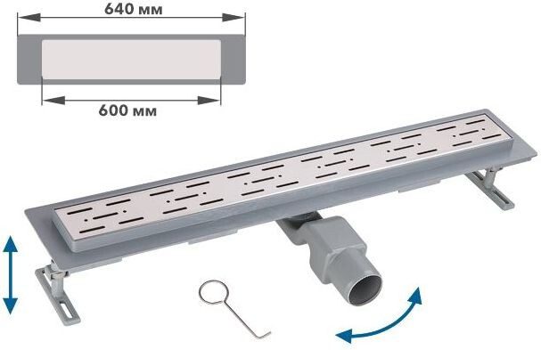 Водоотводящий желоб с поворотным выпуском D50 AV ENGINEERING 65х600 мм (AVE5016560) – продукция Nova заслужила широкую известность благодаря своей функциональности, элегантному внешнему виду и высокой степени надёжности. Решетка изготовлена из нержавеющей стали 304. Водоотводящий желоб имеет поворотный выпуск на 360 градусов. Выход в канализацию – горизонтальный. Диаметр выхода в канализацию: 50 мм.