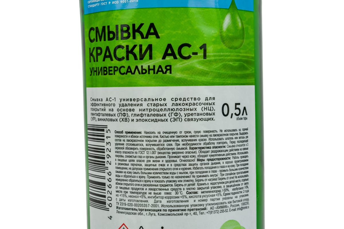 Смывка АС-1 – универсальное средство для эффективного удаления старых лакокрасочных покрытий на основе нитроцеллюлозных (НЦ), пентафталевых (ПФ), глифталевых (ГФ), уретановых (УР), виниловых (ХВ) и эпоксидных (ЭП) связующих.