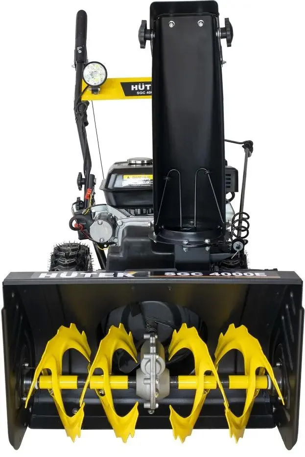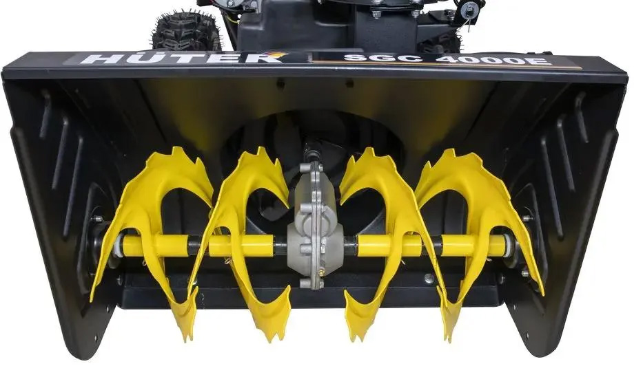 Бензиновый снегоуборщик Huter SGC 4000 предназначен для расчистки небольших территорий от снега. Самоход, есть 4-тактный бензиновый двигатель мощностью 6.5 л.с. Ширина захвата за один проход составляет 56 см. Шнек с зубцами измельчает плотный снег. Благодаря глубокому протектору колеса не скользят при гололеде, обеспечивая надежное сцепление и хорошую проходимость машины. Поворот желоба регулируется специальным рычагом. Рабочая система снегоуборщика Huter представляет собой снегозаборный желоб со шнеком, а также вентилятор в форме крыльчатки и желоб для выброса снега (кроме SGC 3000). Агрегат приводится в действие четырехтактным поршневым одноцилиндровым бензиновым двигателем внутреннего сгорания с воздушным охлаждением.