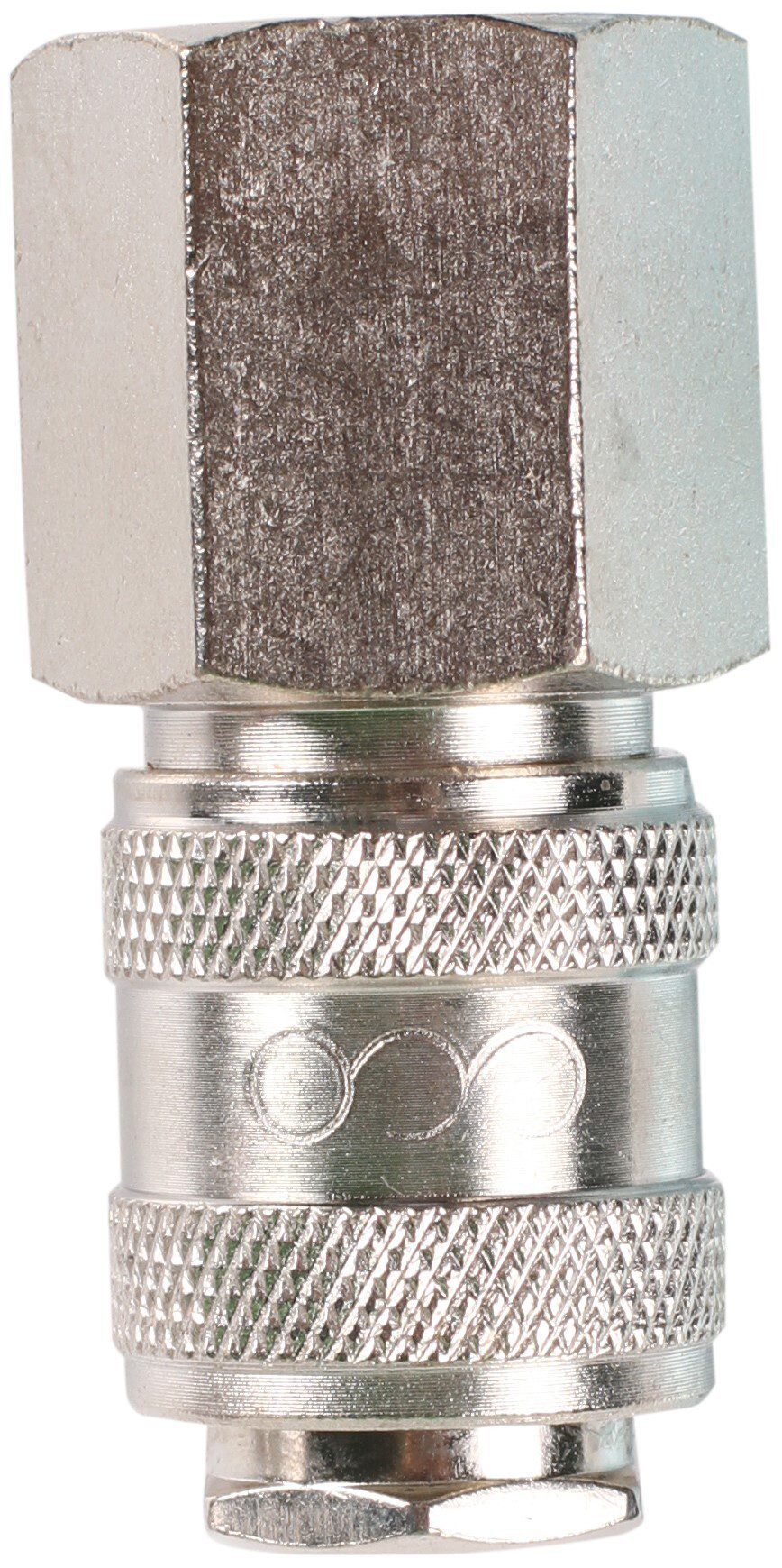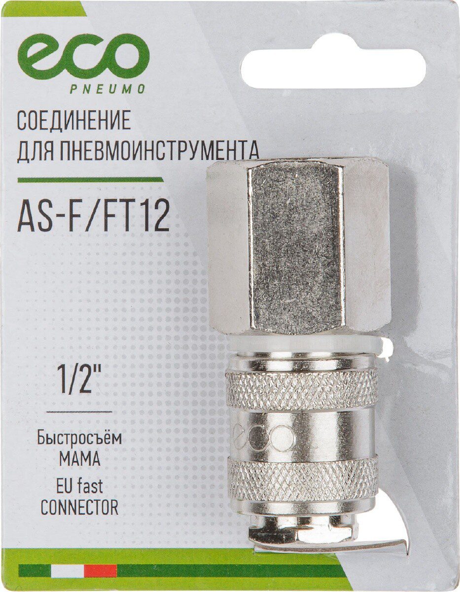 Соединение быстросъемное МАМА х внутренняя резьба G1/2 ECO AS-F/FT12 имеет автоматический клапан, перекрывающий канал и предназначено для установки на выходном конце различных элементов пневмосистемы для создания автоматических прерывателей подачи воздуха. Может быть использовано вместо байонетных гаек на некоторых отечественных компрессорах.