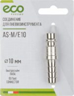Соединение быстросъемное ПАПА х елочка 10 мм ECO AS-M/E10 применяется для установки на входном конце пневматических шлангов с внутренним диаметром 10 мм для создания быстро подключаемых трубопроводов.
