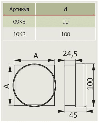 Переходник квадрата 90х90 с воздуховодом d100 ЭРА 09КВ применяется в системах приточно-вытяжной вентиляции для соединения воздуховодов разных диаметров и типоразмеров между собой. Соединение осуществляется напрямую без дополнительных элементов.