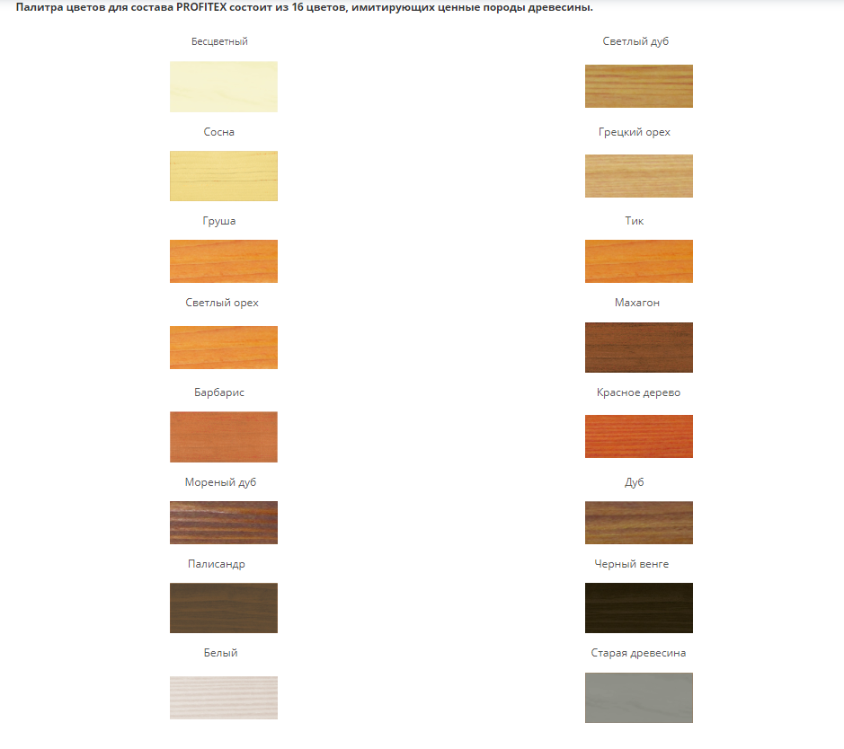 Пропитка PROFITEX предназначена для отделки неокрашенных деревянных строительных конструкций (стены, потолки, двери, оконные рамы, срубы, беседки, садовая мебель, скамьи, изгороди и др.), эксплуатируемых выше уровня земли, а также рекомендуется для обновления деревянных поверхностей, ранее обработанных аналогичными составами. Имитирует ценные породы древесины и сохраняет видимой естественную текстуру. Содержит в своем составе высокоэффективные современные фунгицидные добавки против плесневых, деревоокрашивающих, деревопоражающих грибков и микроорганизмов. Глубоко проникает в волокна древесины, предохраняет древесину от разрушающего воздействия климатических факторов (влаги, УФ-излучений). Предохраняет древесину от биологических заражений, увеличивает срок службы деревянных изделий.