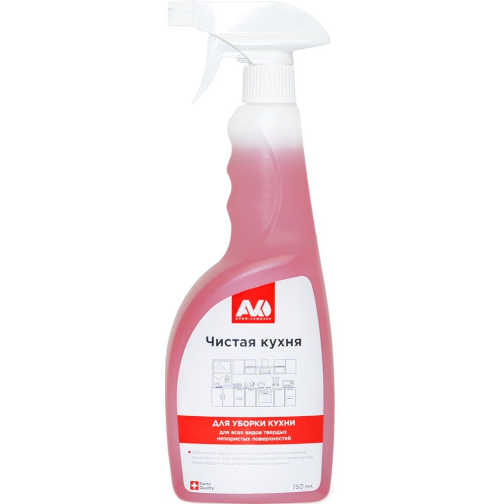 Средство чистящее AVKO Чистая кухня 0,75 л предназначается для уборки кухни (для очищения твердых непористых поверхностей: окрашенных деревянных и металлических, эмалированных, гранитных, мраморных, полимерных, из нержавеющей стали и других металлов, керамических и др.) от жиро-пигментных, масляно-грязевых и других загрязнений.