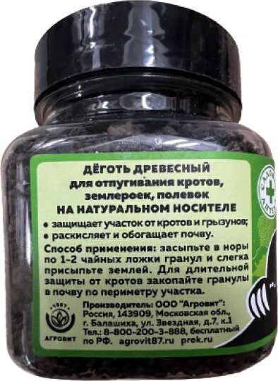 Средство для отпугивания кротов, землероек, полевок АГРОВИТ 300 г (4603646000425) – натуральное средство для отпугивания кротов, землероек, полевок и насекомых-вредителей. Новый препарат, изготовленный на основе берёзового дёгтя путем его нанесения на натуральные минеральные гранулы. Этот уникальный метод делает средство удобным в применении и обеспечивает комфортное хранение продукта. Дополнительно работает против обширной группы вредителей – от летающих и ползающих насекомых до крупных грызунов.