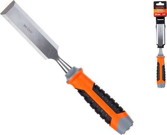 Стамеска плоская 30 мм STARTUL PROFI (ST4075-30) предназначена для проведения столярных и плотницких работ, таких как выдалбливание пазов и гнезд, снятие фасок и шлицов. Материал полотна: хромованадиевая сталь. Твердость рабочей кромки, HRC: 55. Рукоятка: трехкомпонентная обрезиненная. Затыльник: металлический.