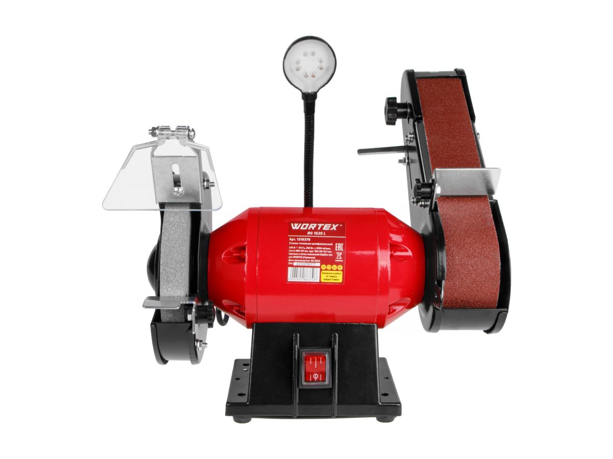 Станок точильно-шлифовальный WORTEX BG 1535 L (1319379) предназначен для заточки и сухой шлифовки инструмента и металлических заготовок. Кроме того, за счет наличия ленты инструмент может использоваться для шлифовки заготовок из дерева.