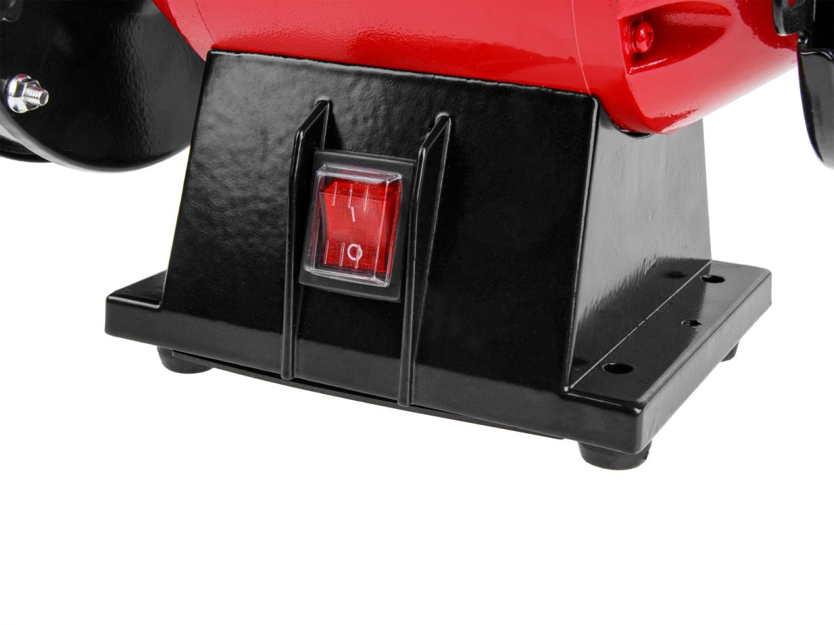 Корпус модели BG 1535 L покрыт термостойкой краской. В комплект поставки входят защитные щитки и металлические кожухи для безопасного использования. Ко всему прочему, станок имеет устойчивое основание с резиновыми ножками, пылезащищенный выключатель и регулируемые упоры для заготовок и инструмента. Небольшие размеры и вес позволяют удобно транспортировать и хранить станок.