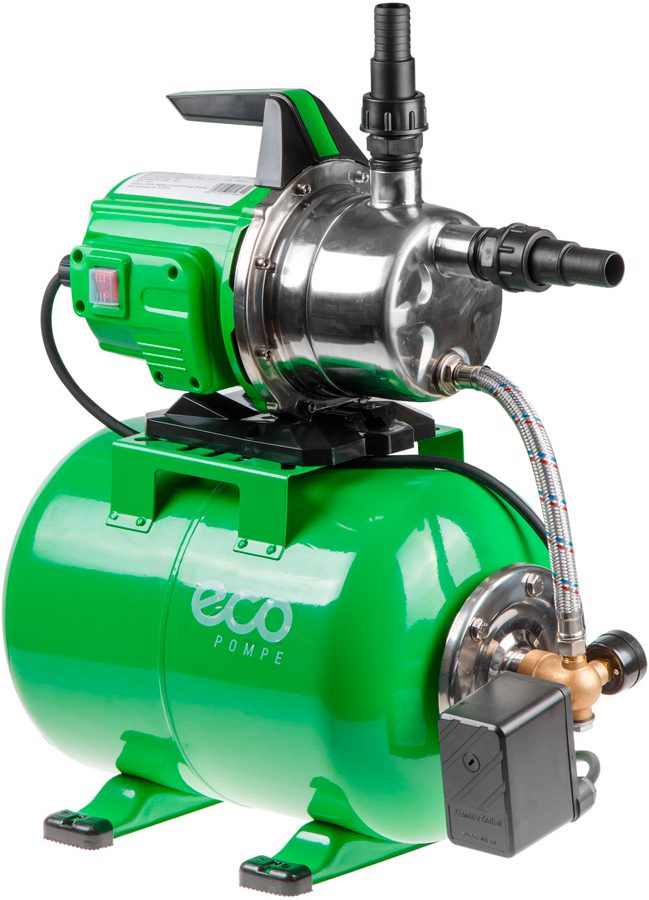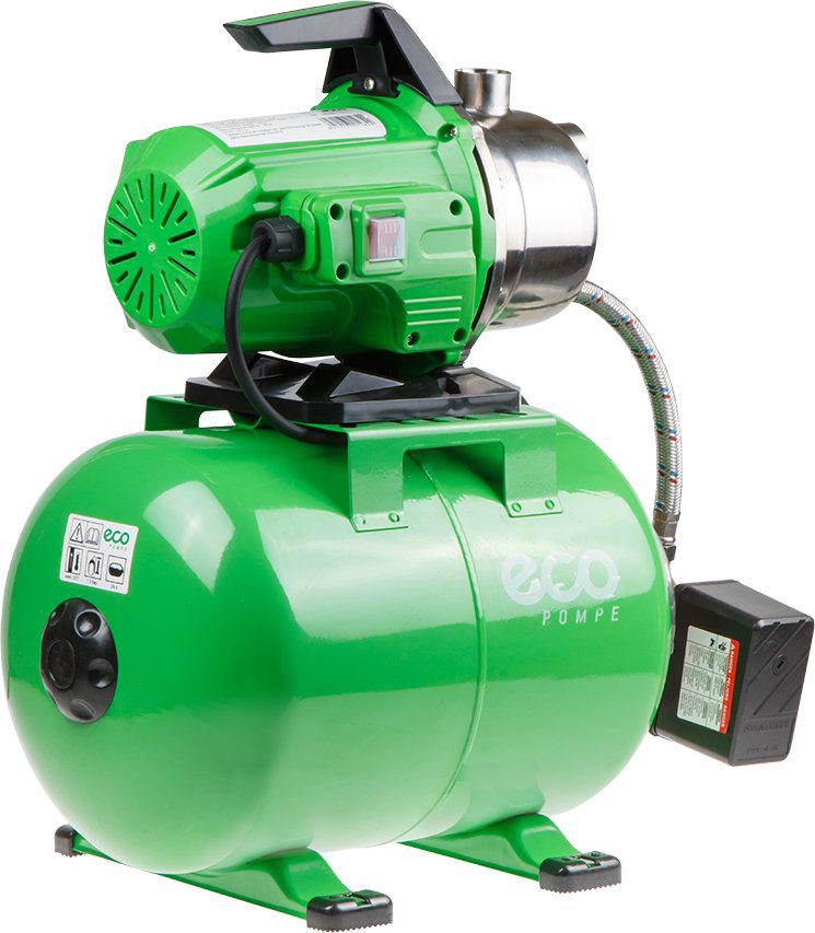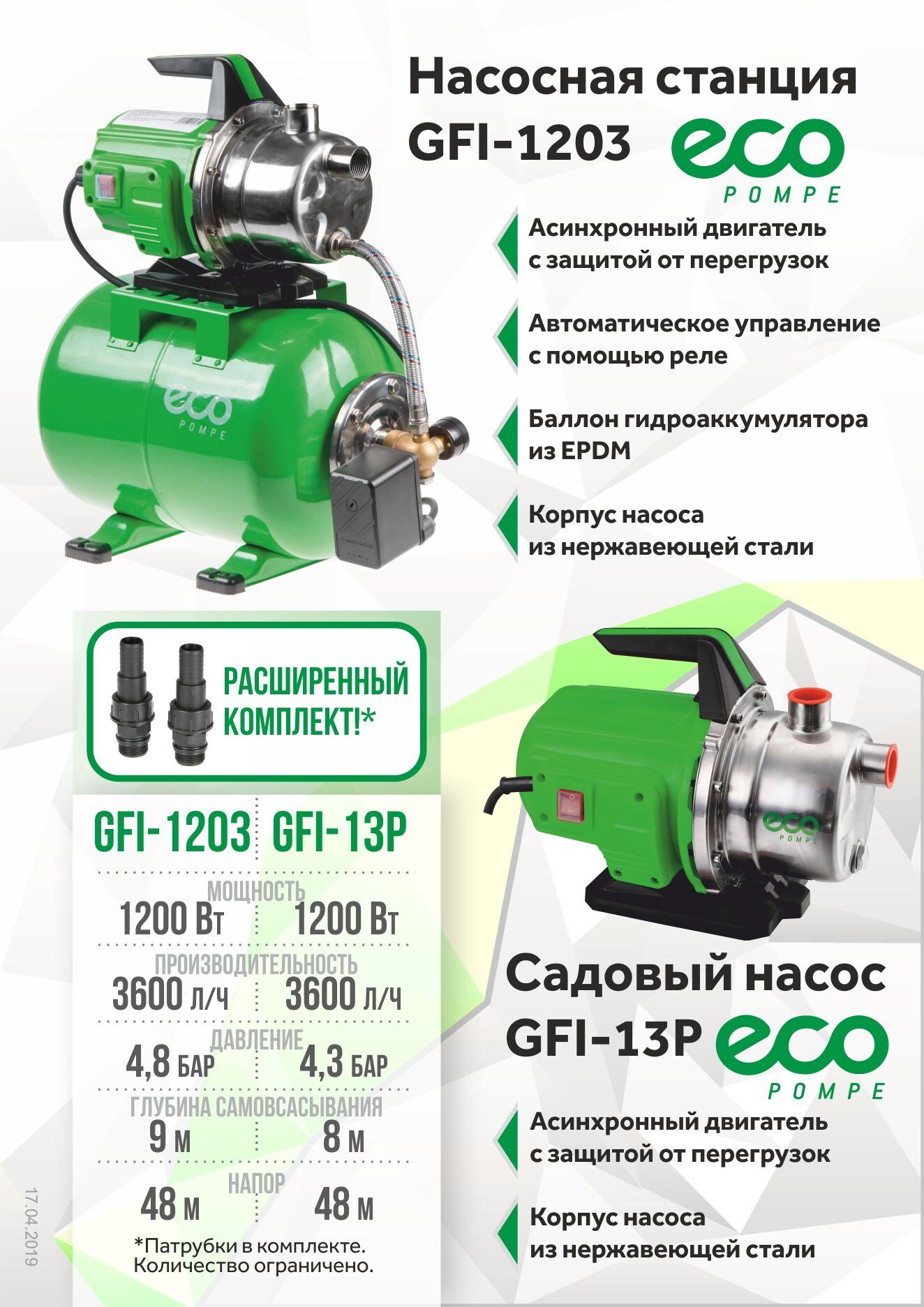 Насосная станция ECO GFI-1203 – компактная и надежная система для водоснабжения загородных домов, коттеджей, участков. Данная насосная станция предназначена для работы с чистой водой, для ирригации и орошения, для подачи воды к дому. Насосная станция подходит исключительно для транспортировки следующих жидкостей: чистой воды, дождевой воды, вод, содержащих хлор (например, бассейны). Насосная станция НЕ подходит для транспортировки: питьевой воды, соленой воды, сточных вод, продуктов питания, агрессивных и химических веществ, легковоспламеняющихся, взрывчатых жидкостей, жидкостей, температура которых выше 35°С, воды, содержащей песок и абразивных жидкостей. Автоматическое управление с помощью реле. Накопительный бак (гидроаккумулятор) обеспечивает отсутствие скачков давления в водопроводной магистрали. Асинхронный двигатель с защитой от перегрузок. Баллон гидроаккумулятора из экологически безопасного EPDM. Крыльчатка из пластика. Защита от перегрузок. Манометр повернут циферблатом к пользователю, для удобного контроля давления.