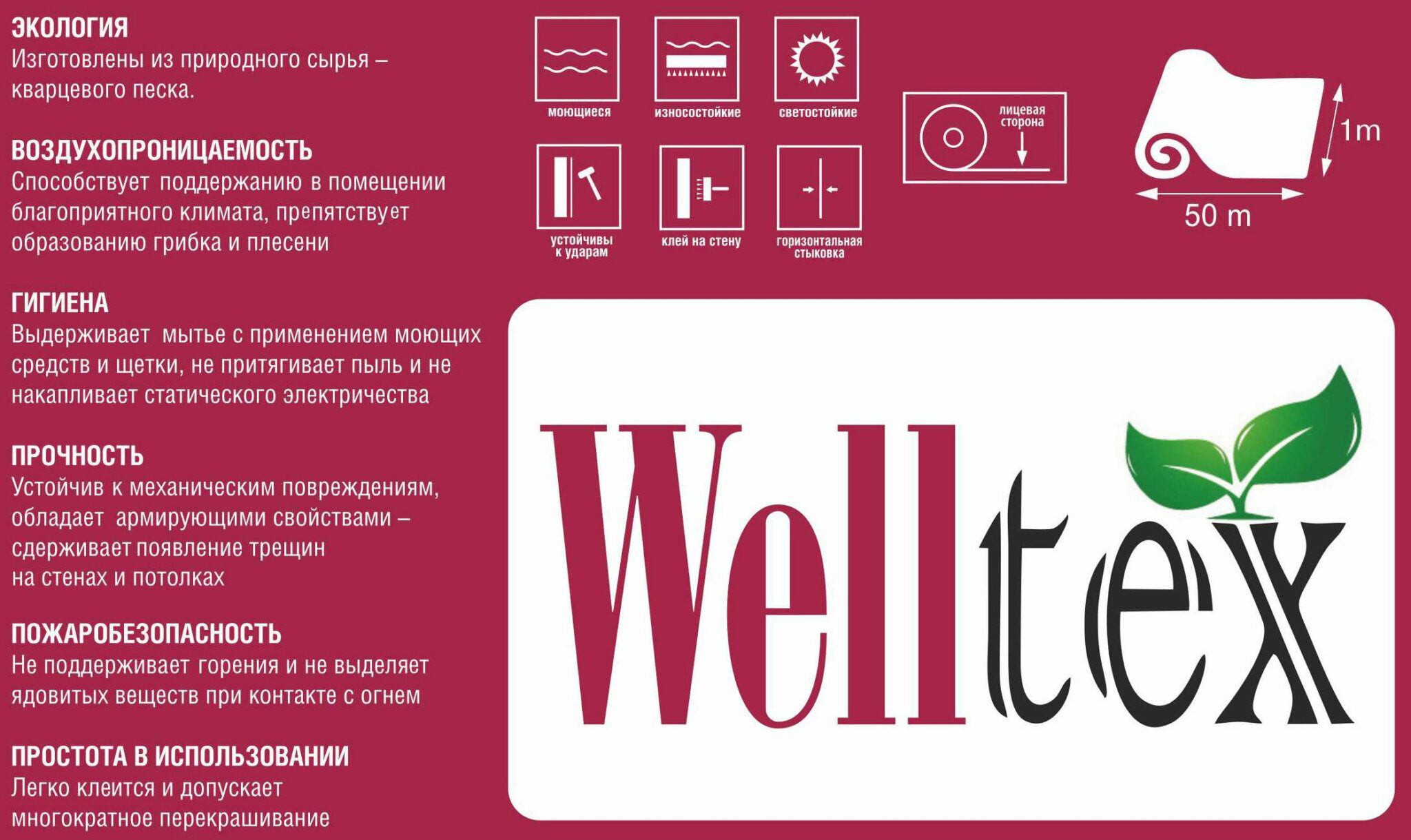 Стеклохолст малярный WELLTEX Normal 1×50 м (W45) позволяет достичь прекрасного результата в виде идеально гладких стен и дают надёжную защиту поверхности от появления трещин.