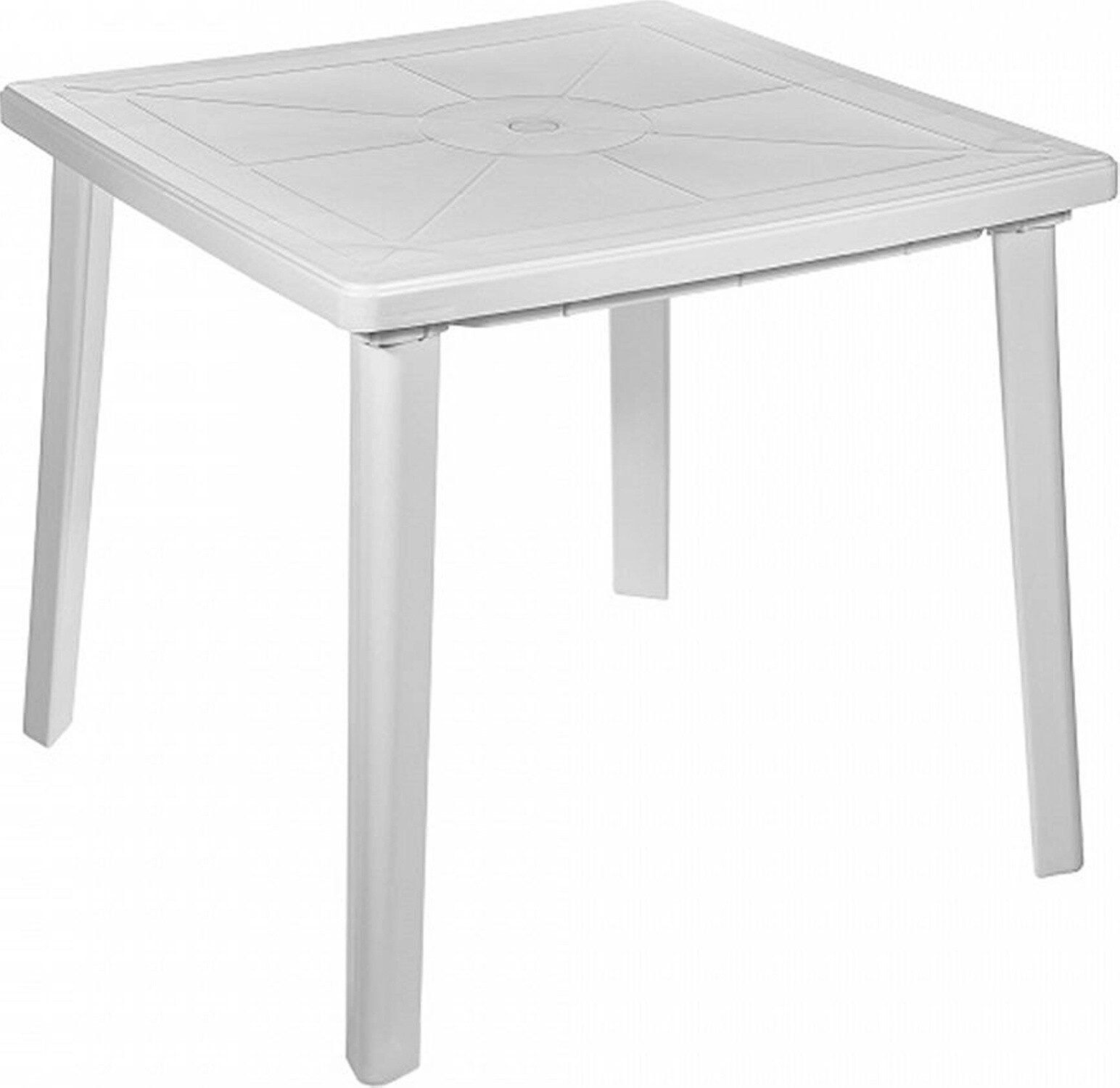 Стол садовый СТАНДАРТ ПЛАСТИК ГРУПП квадратный белый — небольшой квадратный стол из прочного пластика классического дизайна. В центре столешницы имеется отверстие с заглушкой для установки зонта. Ножки легко снимаются для лучшей транспортировки и хранения. Дополнив стол пластиковыми стульями в тон, вы легко создадите удобный и практичный комплект мебели. Мебель из пластика устойчива к перепадам температур, повышенной влажности и УФ-лучам. Составив несколько квадратных столов, можно организовать комфортную зону для отдыха для большой компании.