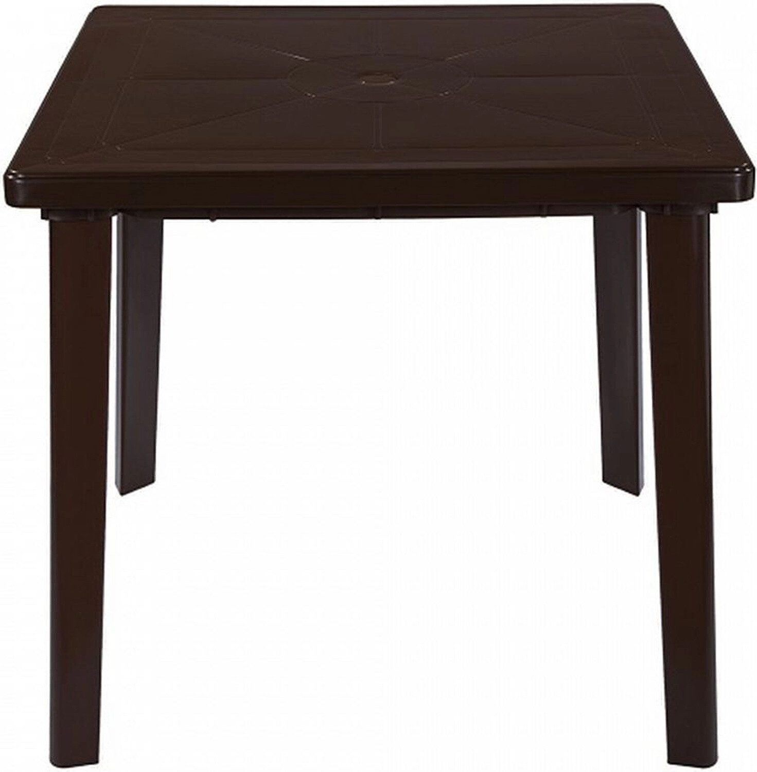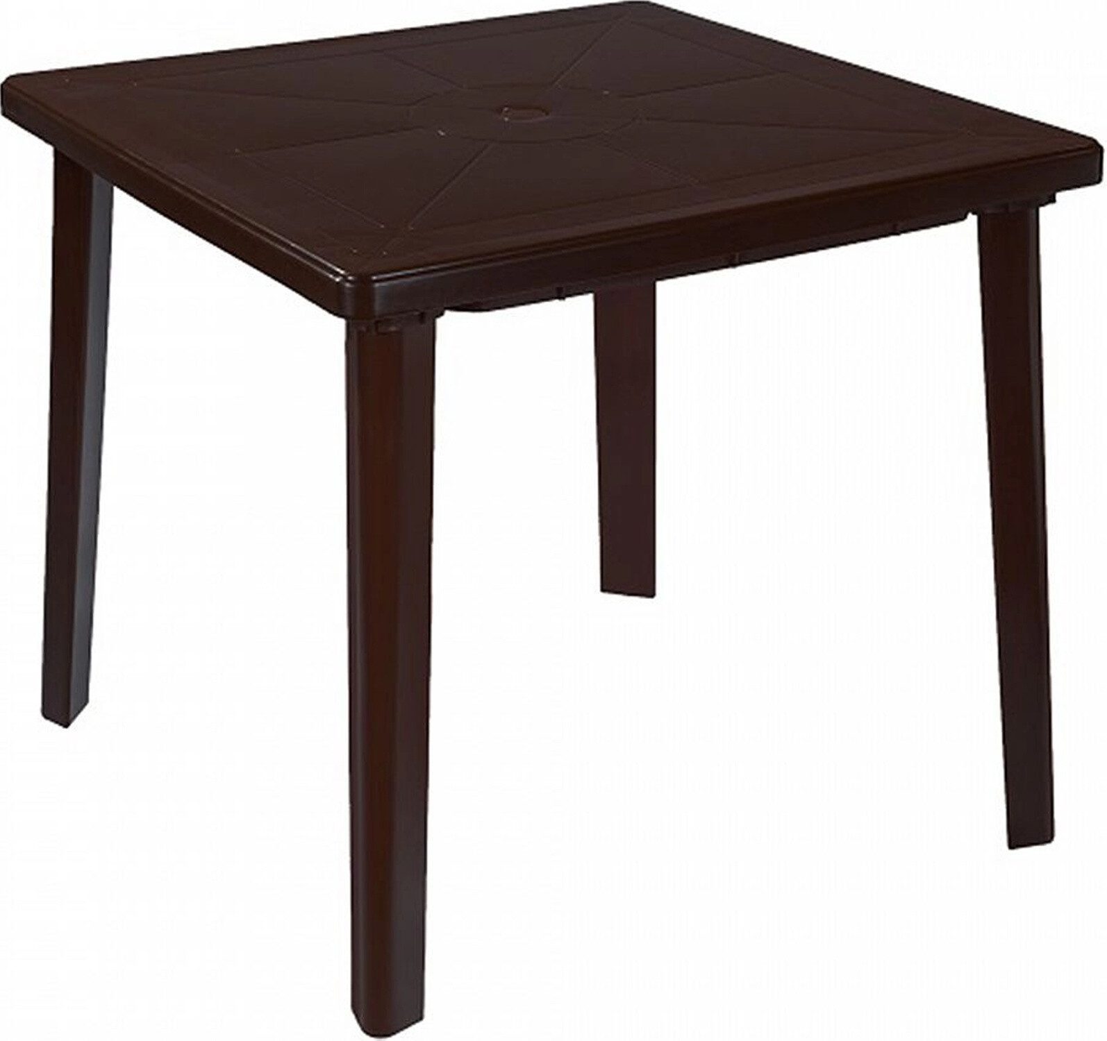 Стол садовый СТАНДАРТ ПЛАСТИК ГРУПП квадратный шоколадный — небольшой квадратный стол из прочного пластика классического дизайна. В центре столешницы имеется отверстие с заглушкой для установки зонта. Ножки легко снимаются для лучшей транспортировки и хранения. Дополнив стол пластиковыми стульями в тон, вы легко создадите удобный и практичный комплект мебели. Мебель из пластика устойчива к перепадам температур, повышенной влажности и УФ-лучам. Составив несколько квадратных столов, можно организовать комфортную зону для отдыха для большой компании.