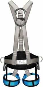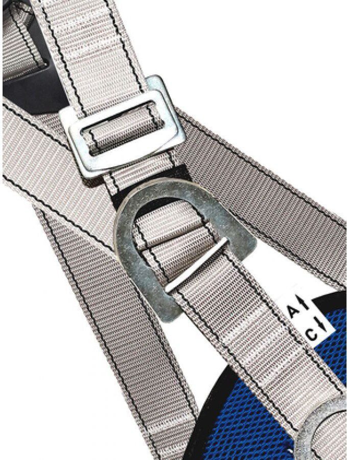 Привязь оснащена двумя D-кольцами расположенными на поясе – для удержания и позиционирования, грудной точкой – для удержания и страховки, и брюшной точкой крепления – для работы в системах канатного доступа. Внутренняя часть пояса изготовлена из дышащей влагоотводящей 3D-сетки, наружная часть – из износостойкой влагозащитной ткани, а Х-образная пластина – из морозостойкого материала. Для удобства эксплуатации предуспотрены разъёмные пряжки, а также разгрузочные петли для развески оборудования.
