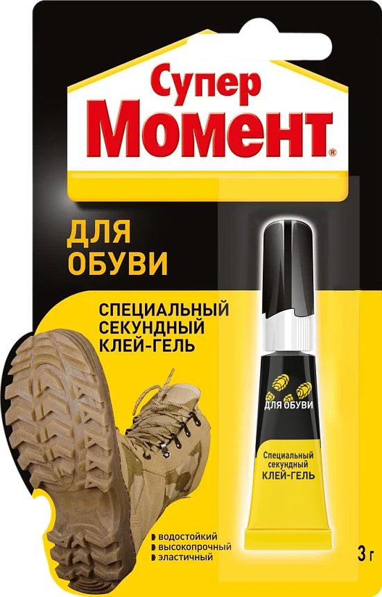 Клей специализированный МОМЕНТ для обуви 3 г (1541578) идеально подходит для склеивания обуви и обувных материалов: кожи, кожзаменителя, резины, ткани и других материалов.Склеивает мгновенно и заполняет мельчайшие трещины. Образует незаметный бесцветный клеевой шов.