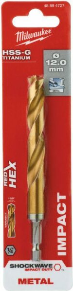 Сверло по металлу 12,0x83x127 мм MILWAUKEE HSS-G-TIN (48894727) с 1/4″ шестигранным хвостовиком оптимизировано для шуруповертов и ударных винтовертов. Угол заточки 135° уменьшает гуляние при засверливании. Конструкция шнека позволяет быстрее выбрасывать стружку. Титановое покрытие распределяет тепло для большей эффективности.