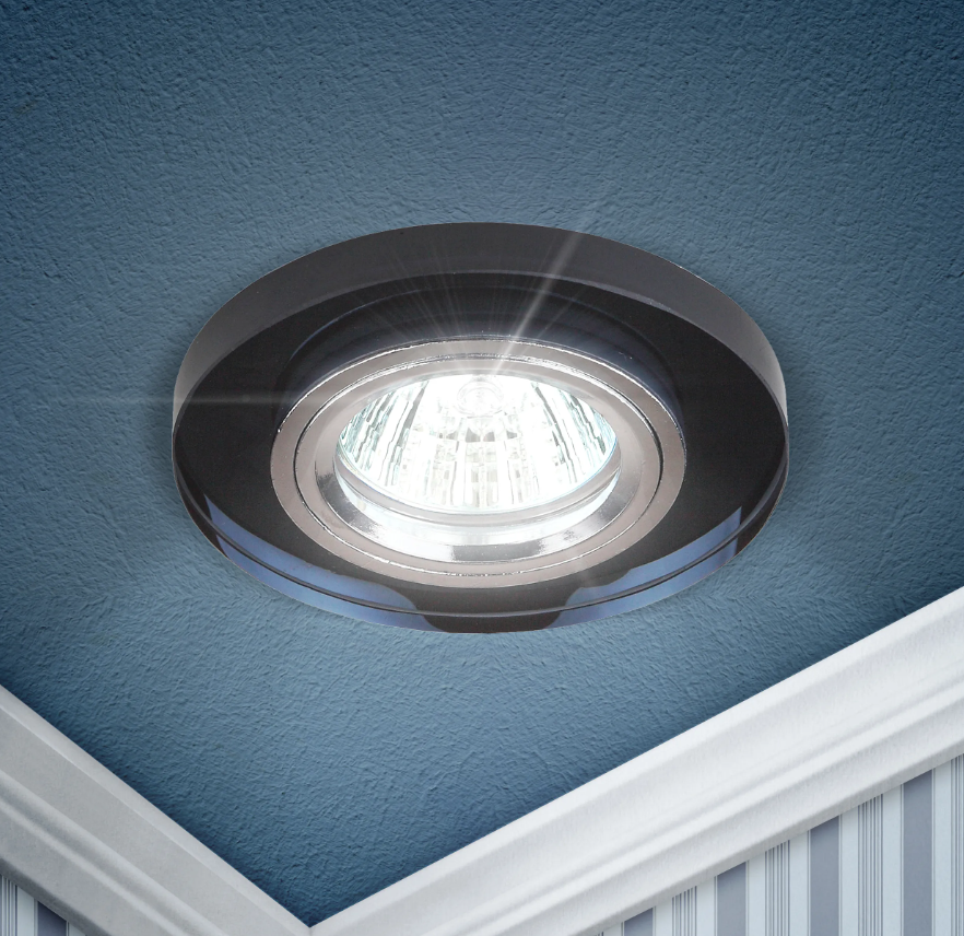 Точечный светильник под лампу GU5.3 ЭРА DK7 50W, хром/черный предназначен для основного и акцентного освещения жилых и офисных помещений.