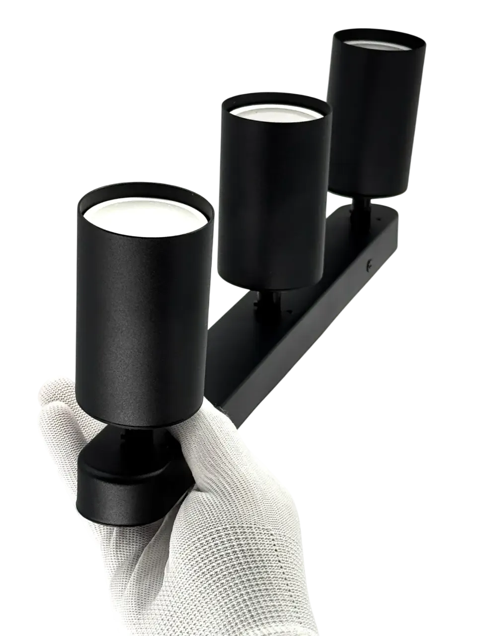 Светильник накладной поворотный GU10 3х12 Вт TRUENERGY Modern черный (21362) – стильный и функциональный светильник идеально подходит для создания акцентного освещения и подчеркивания ключевых элементов вашего пространства. Удобная конструкция позволяет легко монтировать светильник на потолок или стену, обеспечивая надежное крепление и безопасность использования. Светильник рассчитан на три лампы типа GU10 мощностью до 12 Вт каждая, что обеспечивает яркое и направленное освещение. Диаметр плафона – 54 мм, высота плафона – 87 мм. Размер основания – 400х40х24 мм.
