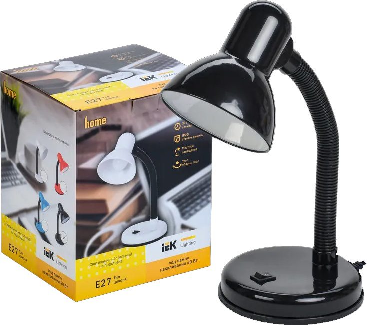 Лампа настольная IEK Lighting 1002 черный ‒ классический настольный светильник со сменной лампой. Прост и удобен в применении, предназначен для создания дополнительного освещения рабочего места. Простая конструкция, позволяющая легко регулировать угол наклона. Основание-подставка – классический вариант, когда осветительный прибор ставится прямо на стол. Светильник легко передвинуть и отрегулировать степень освещения. Подходит для ламп мощностью 40 Вт.
