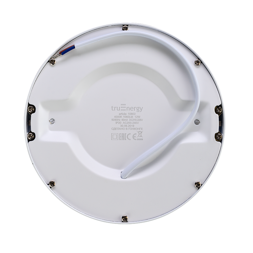 Светильник накладной светодиодный 6 Вт 4000К TRUENERGY Clip-on Круг (10801) предназначен для освещения различных бытовых, коммерческих, а также промышленных помещений. Основной накладной способ монтажа и альтернативный встраеваемый. Регулируемое взрезное отверстие. Материал рассеивателя – белый акриловый полимер. Срок службы – 50000 часов или 20000 циклов вкл./выкл. Угол рассеивания – 120 градусов. Преобразователь напряжения встроен в светильник. Регулируемое посадочное отверстие – 55-90 мм.