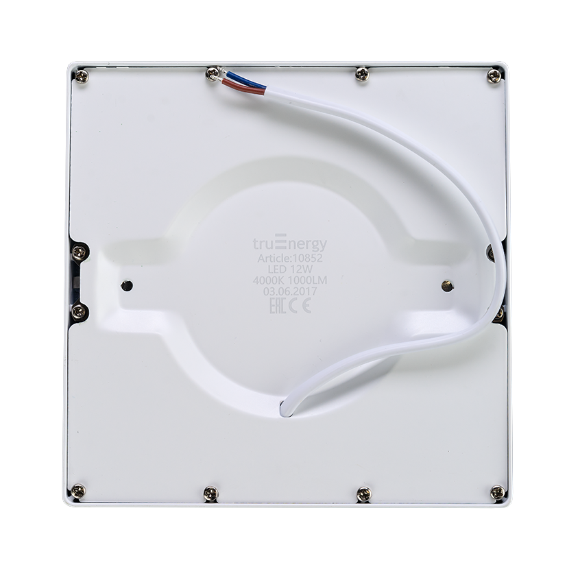 Светильник потолочный светодиодный 24 Вт 4000К TRUENERGY Clip-on Квадрат (10854) предназначен для освещения различных бытовых, коммерческих, а также промышленных помещений. Основной накладной способ монтажа и альтернативный встраеваемый. Регулируемое взрезное отверстие. Материал рассеивателя – белый акриловый полимер. Срок службы – 50000 часов или 20000 циклов вкл./выкл. Угол рассеивания – 120 градусов. Преобразователь напряжения встроен в светильник.