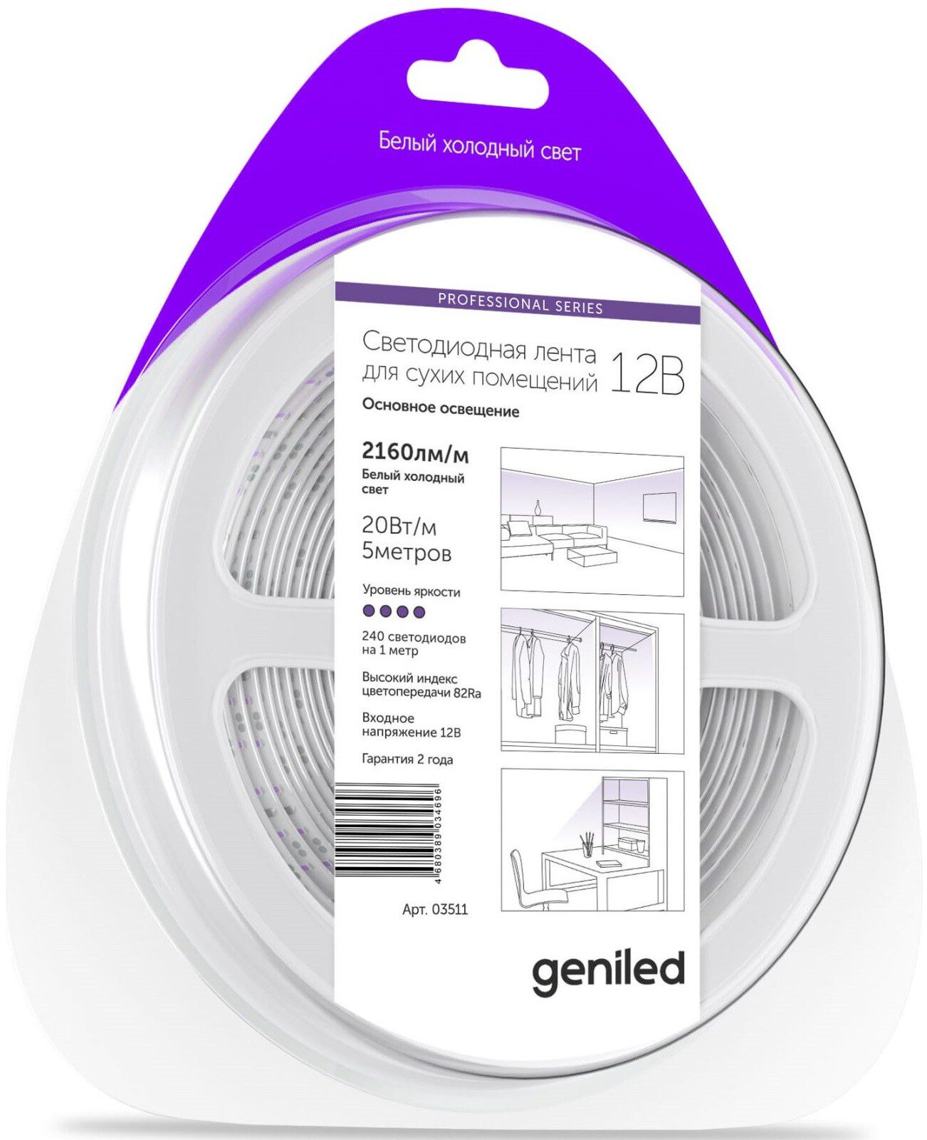 Лента светодиодная 2835 20 Вт/м 6000-6500 К IP33 12 В 5 м GENILED (03511) купить в сети строительных магазинов Мастак