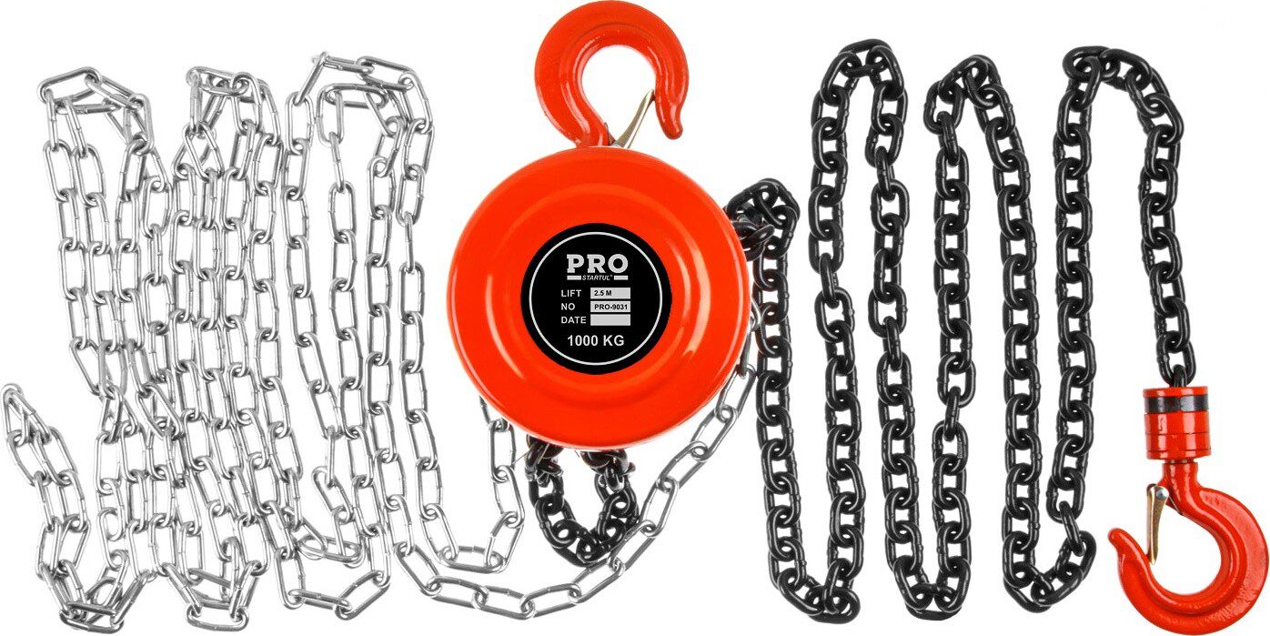 Таль ручная цепная 1 т 2,5 м PRO STARTUL (PRO-9031) – грузоподъемное устройство для осуществления погрузочно-разгрузочных, ремонтных и монтажных работ. Крюки оснащены предохранительными защелками. Тяговое усилие – не более 1500 кг.